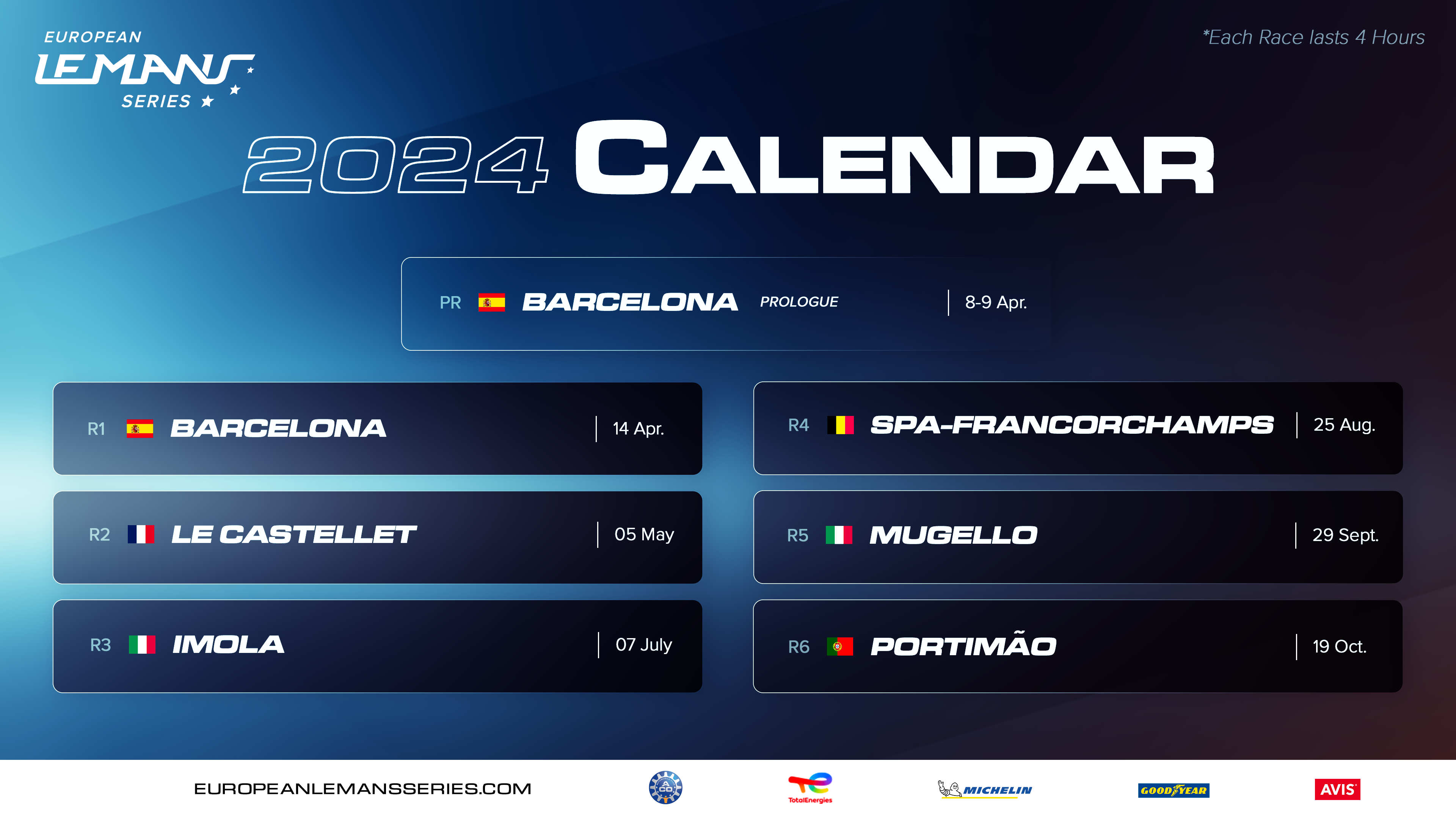 CLICK HERE if you want to download the 2024 European Le Mans Series Calendar assets.