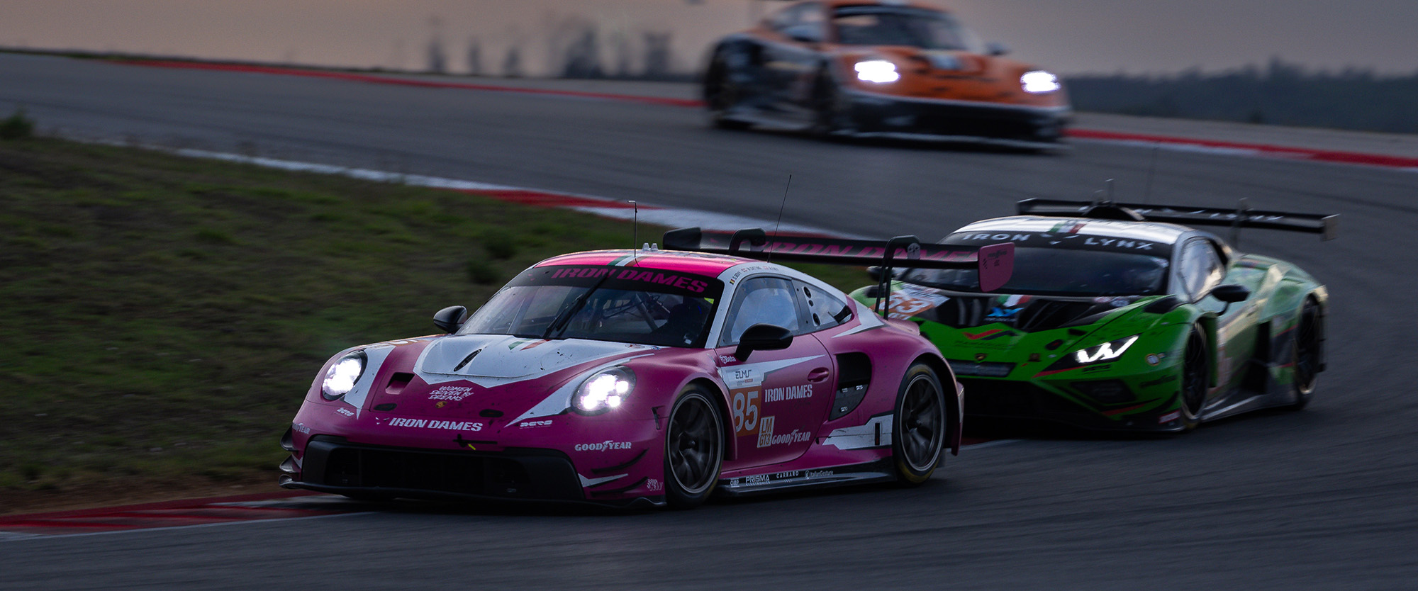 The LMGT3 title was being decided by no less than eight teams after qualifying. The no85 Iron Dames Porsche led from pole, with Sarah Bovy handing over to Rahel Frey and then Michelle Gatting.