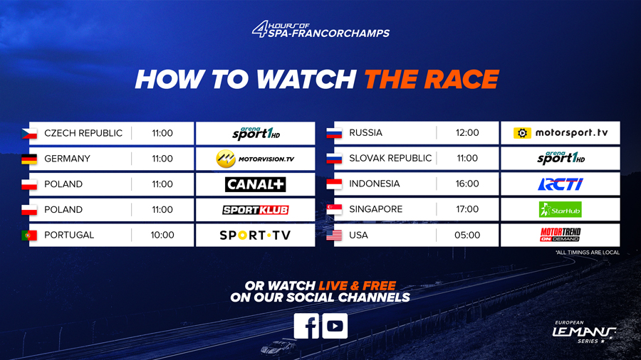 For the full list of broadcasters that will be showing the 4 Hours of Spa-Francorchamps live, or the race highlights, CLICK HERE